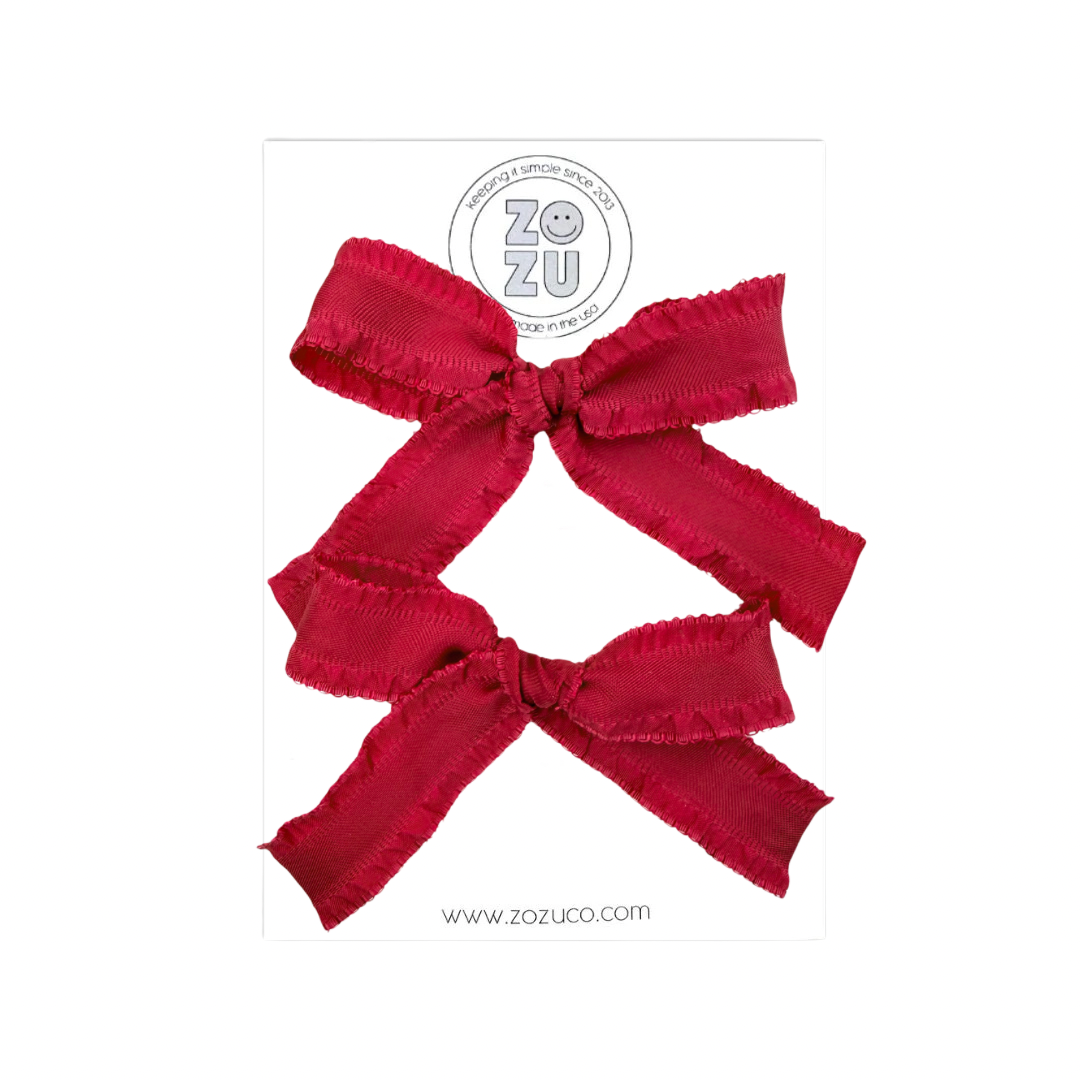 Ruby Ruffle Edge :: Mini Explorer Ribbon Pigtail Set